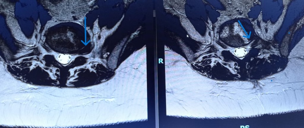 Se da también la circunstancia de que los informes de la Resonancia Magnética de dichos pacientes señalan distintas alteraciones degenerativas “menores” pero con frecuencia pasan por alto la raíz del problema, en este caso, la presencia de una hernia discal foraminal.