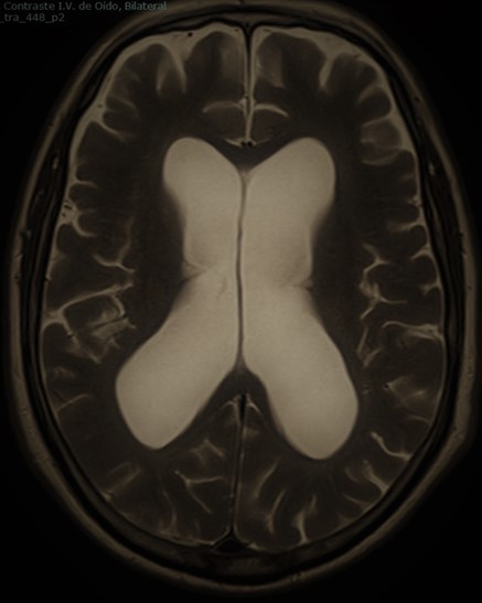 Dentro de los tipos de hidrocefalia que con mayor frecuencia tratamos se encuentra la «hidrocefalia crónica del adulto». De aparición en adultos en torno a 60-70 años se trata de un tipo de hidrocefalia comunicante caracterizada por la tríada de Hakim-Adams en la que aparece la apraxia de la marcha, la incontinencia urinaria y la demencia. Representa una de las pocas causas de demencia tratables en la actualidad mediante la implantación de una derivación ventriculoperitoneal.